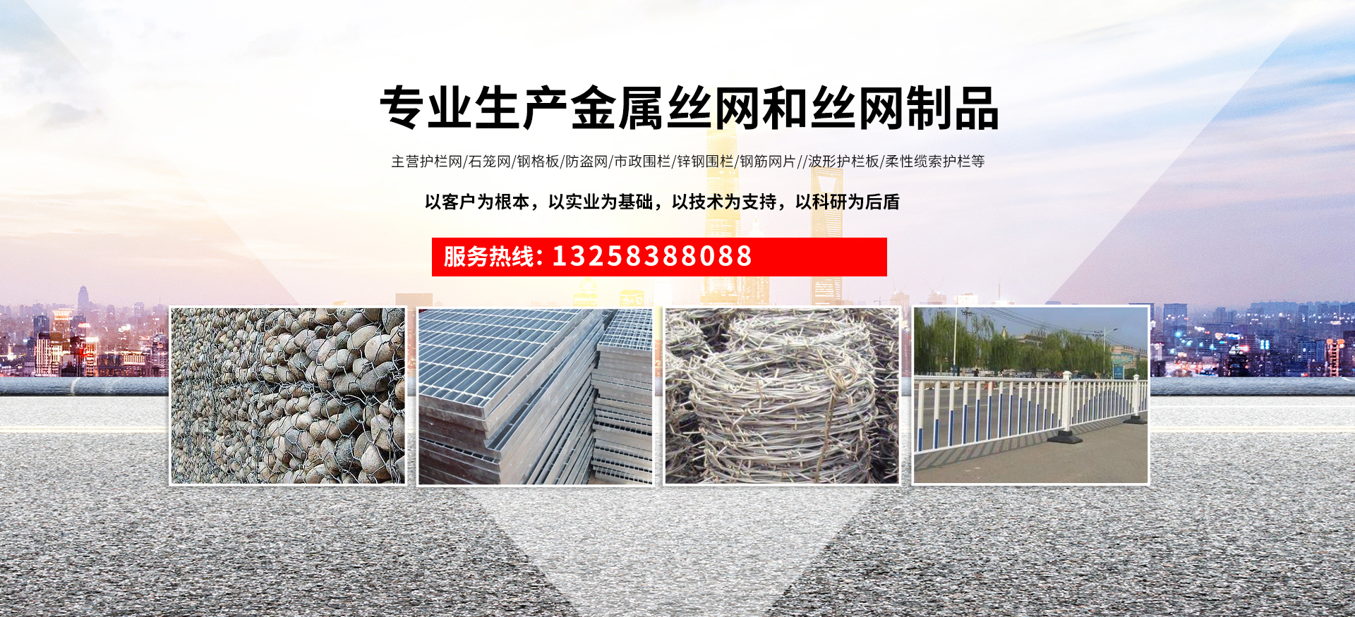 成都宏旭金屬絲網(wǎng)制造有限公司主營護(hù)欄網(wǎng)系列、石籠網(wǎng)系列、鋼格板、防盜網(wǎng)、市政圍欄、鋅鋼圍欄、鋼筋網(wǎng)片、聲屏障系列、波形護(hù)欄板、柔性纜索護(hù)欄、SNS邊坡防護(hù)網(wǎng)等其他絲網(wǎng)類產(chǎn)品。特殊規(guī)格可加工定做,也可根據(jù)客戶來圖來樣定做。自創(chuàng)業(yè)以來,公司一直堅持市場為導(dǎo)向,以客戶為根本,以實業(yè)為基礎(chǔ),以技術(shù)為支持,以科研為后盾,集科研、生產(chǎn)、經(jīng)營為一體,不斷研制開發(fā)新產(chǎn)品,開拓市場,走綜合發(fā)展之路。多年來,公司憑借過硬的質(zhì)量,良好的信譽(yù)、優(yōu)質(zhì)的服務(wù)、合理的價格,贏得了市場和商家的一致好評。